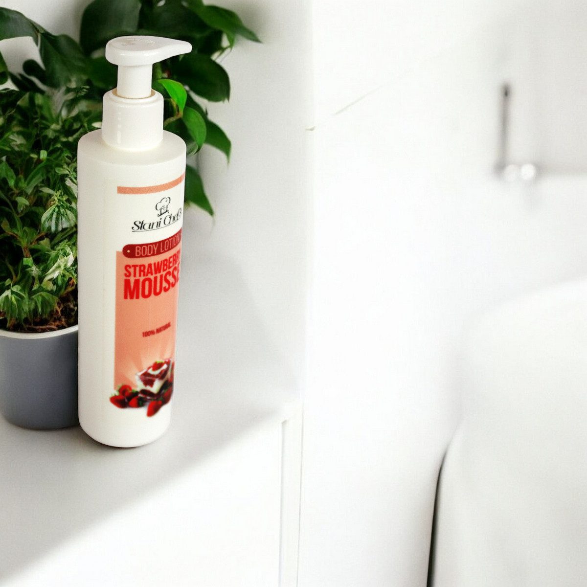 Loțiune de corp cu căpșuni Oferă o combinație de hidratare profundă și un parfum fructat răcoritor. Extractul natural de căpșuni menține pielea netedă și hrănită, oferind elasticitate și moliciune. Formula ușoară se absoarbe rapid și nu lasă reziduuri grase. Parfumul proaspăt de căpșuni creează o senzație plăcută și energie pe tot parcursul zilei.