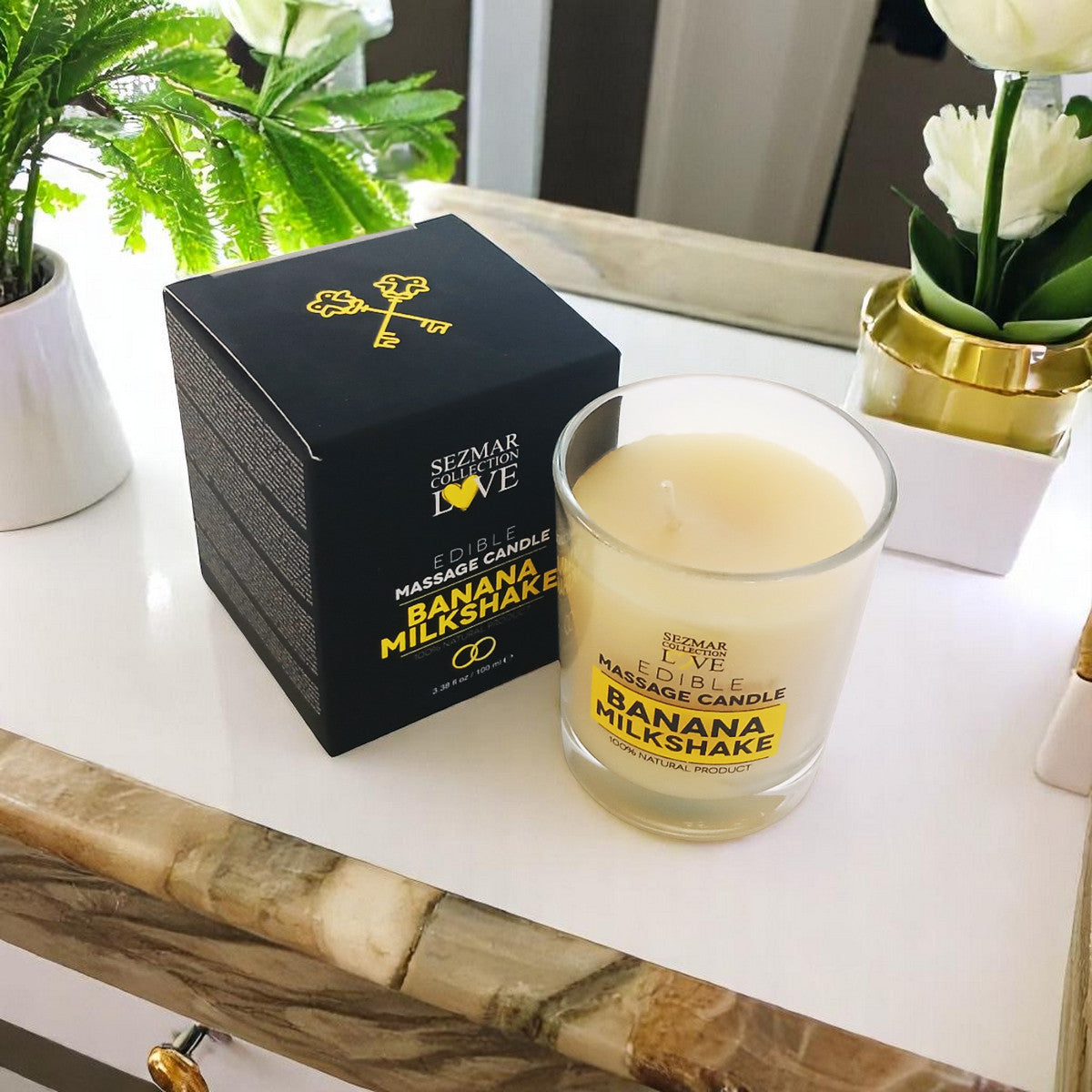Lumânarea de masaj cu milkshake de banană este concepută pentru a transforma fiecare masaj într-o experiență de neuitat. Cu compoziția sa 100% naturală și parfumul irezistibil de milkshake de banană, această lumânare nu numai că umple camera cu o aromă plăcută, dar hidratează și hrănește pielea, lăsând-o moale și netedă. Ideală pentru momente romantice, adaugă un plus de căldură și senzualitate oricărui joc amoros. Bucură-te de relaxare și plăcere cu acest produs unic. Masajul erotic este modalitatea perfectă de a te conecta fizic și emoțional cu partenerul tău. Masajul este o modalitate excelentă de a-ți relaxa corpul și de a stimula fericirea sexuală. Special concepută, lumânarea se topește la o temperatură scăzută, sigură pentru piele, astfel încât o poți turna pe corpul partenerului tău pentru un masaj cald, profund hidratant și seducător. Aprinde lumânarea și bucură-te de aroma care va umple camera și îți va oferi simțuri. Va dura între 15 și 30 de minute pentru ca lumânarea să se topească suficient pentru a începe masajul - fără îndoială, va găsi o modalitate de a trece timpul! Odată topită, lumânarea se va transforma în ulei de masaj care hrănește și hidratează pielea. Stinge flacăra, testează temperatura uleiului înfundându-ți degetul și apoi ești gata să te joci. Când este gata, toarnă o cantitate mică de ulei cald și hidratant pe corpul partenerului tău. Dacă nu ai încercat încă o lumânare de masaj, nu ezita, aprinde rapid lumânarea și răsfață-te pe tine și pe partenerul tău cu un masaj bogat și cald... Poftă bună! Beneficii cheie:- Compoziție naturală: Ingrediente 100% naturale care îngrijesc pielea ta.