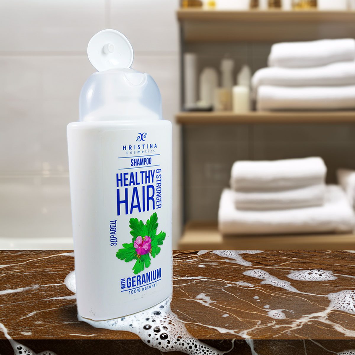 Șampon cu geranium pentru păr sănătos, 200 ml